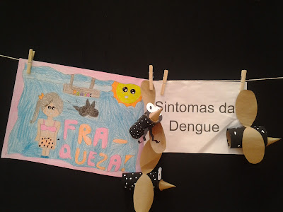 A turma 52 abordou os sintomas da dengue, através da confecção de cartazes informativos e fantoches do mosquito.